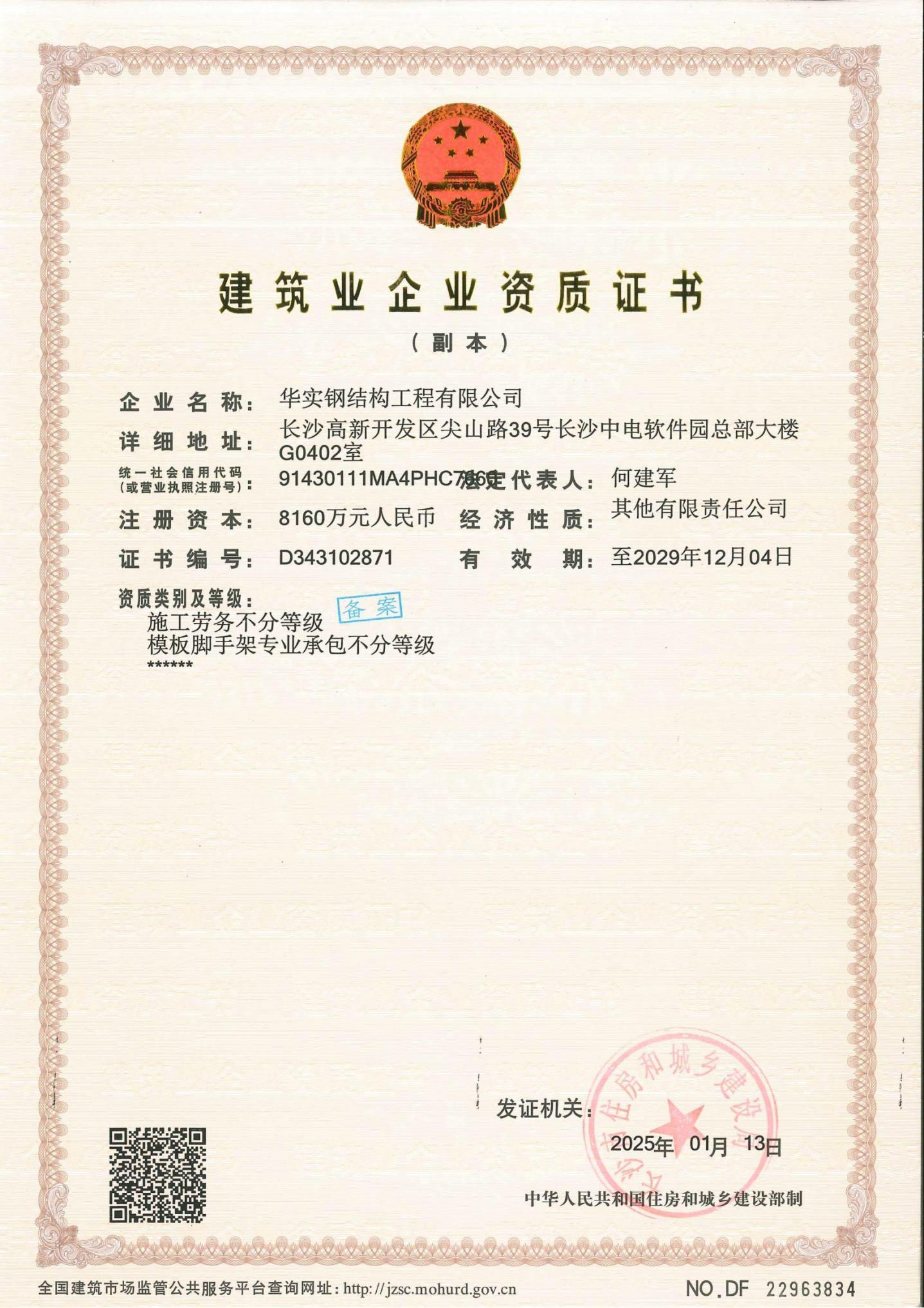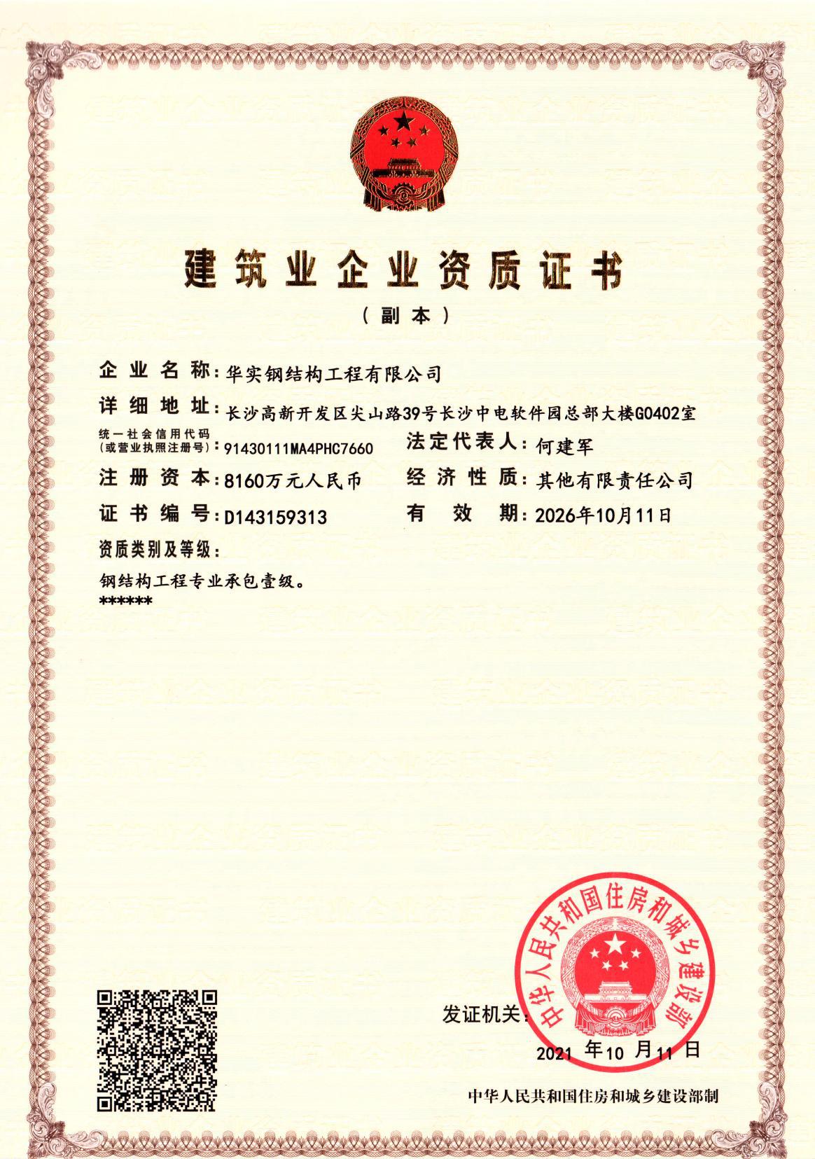 超過1000家的大型工程項目都選擇了華實鋼結(jié)構(gòu)資質(zhì)與榮譽(yù)